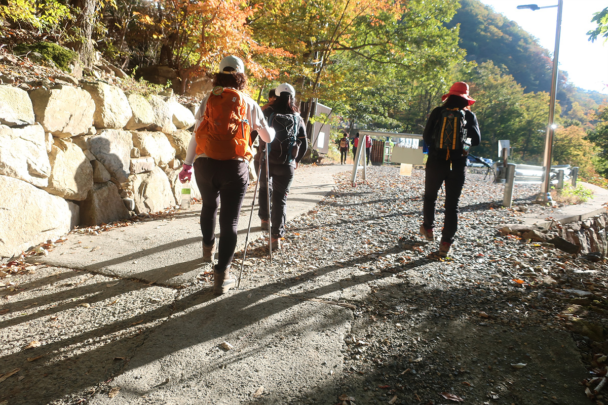 오늘 하산지점은 휴양림 하단이다. 왔던 길을 되돌아 내려갔다.